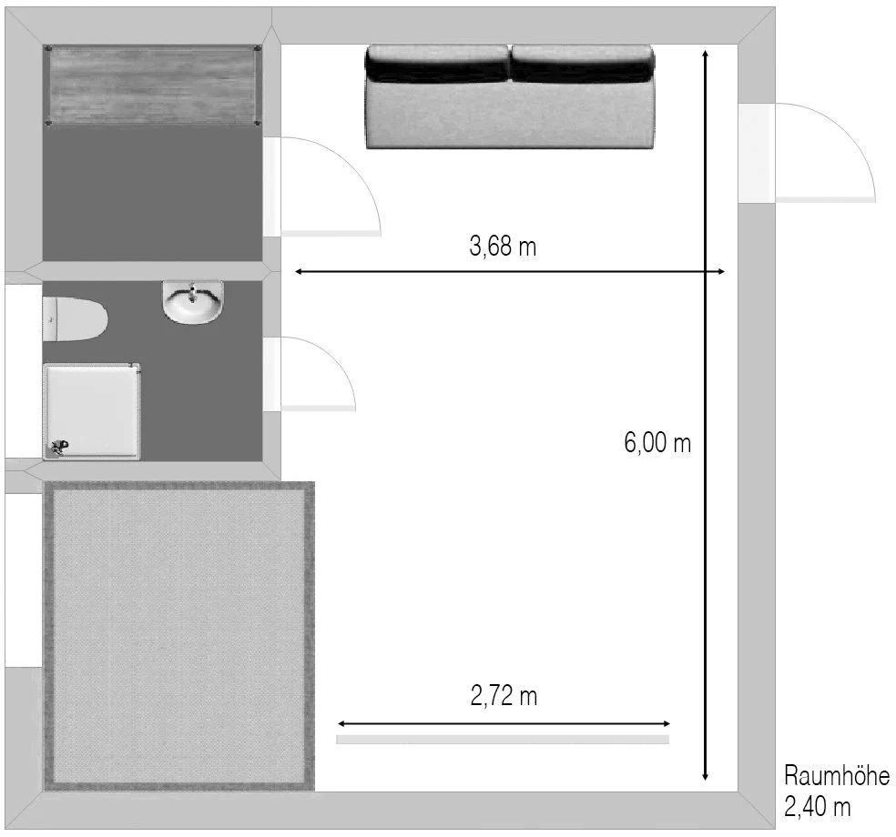 Unser Studio verfügt über ein Bad mit WC und Dusche.